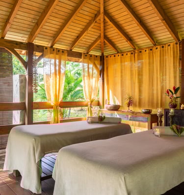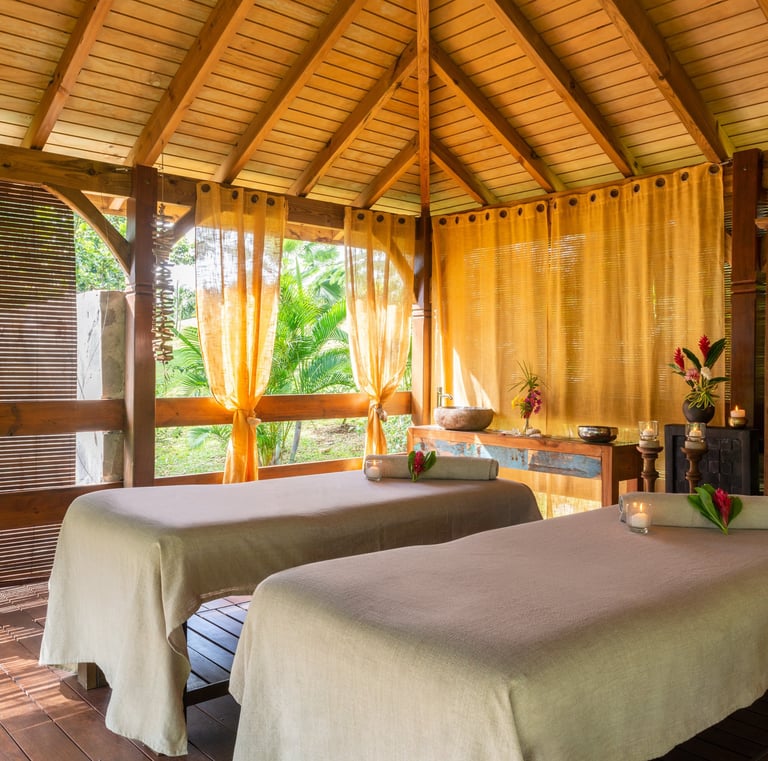Situé à Petit Bourg, en Guadeloupe, le Spa les Alizés à l’Habitation Saint Charles invite à une échappée belle, loin du tumulte de la vie quotidienne. Dans un cadre idyllique, notre spa en plein air vous accueille sous un carbet traditionnel ouvert sur une nature luxuriante, pour une expérience sensorielle unique.